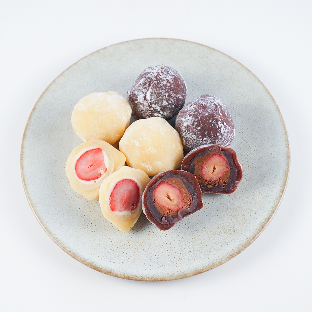 ほぼオーガニックで添加物なし。最高峰のローカカオと苺が溶け合う、冬の代表作。【生チョコ苺大福&生苺大福】