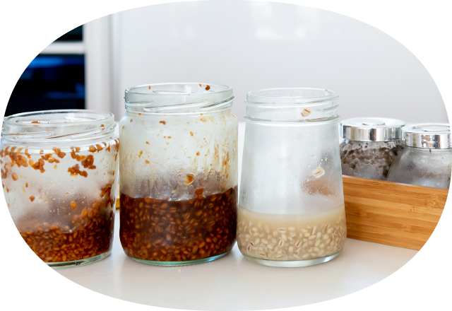 お米や葛粉、小豆、果物、麹など私達日本人として発酵調理や昔々から食べてきた素材を使うことで、味や食感、風味それぞれ個性が光るように表現しました。それぞれ違う食感や鼻に抜ける余韻をお楽しみください。-