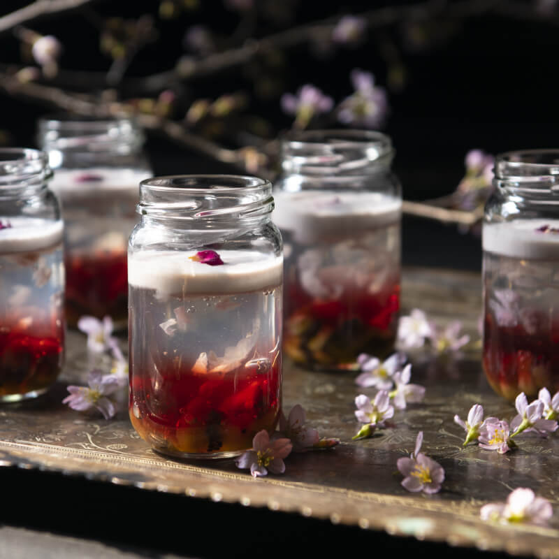 ドリンクはオリジナル製造の花茶、コーディアル、